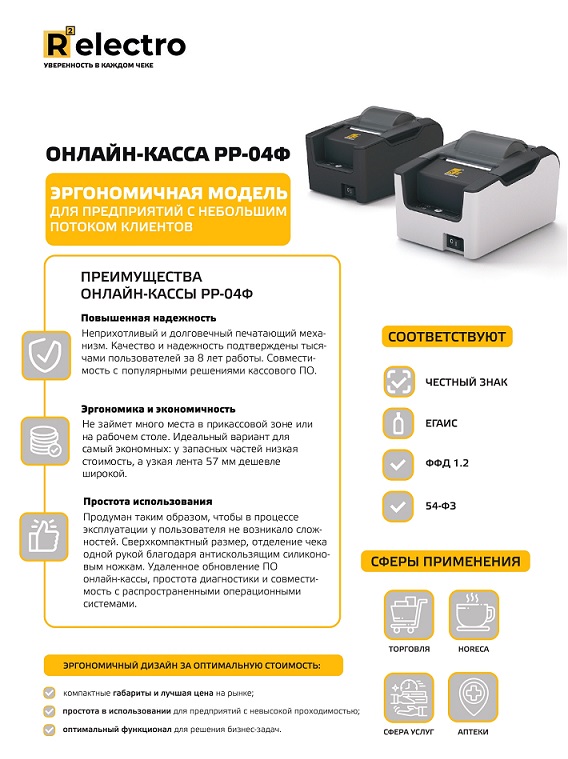 Relectro ККТ РР-04Ф — бюджетная онлайн-касса с поддержкой ФФД 1.2 для небольших предприятий