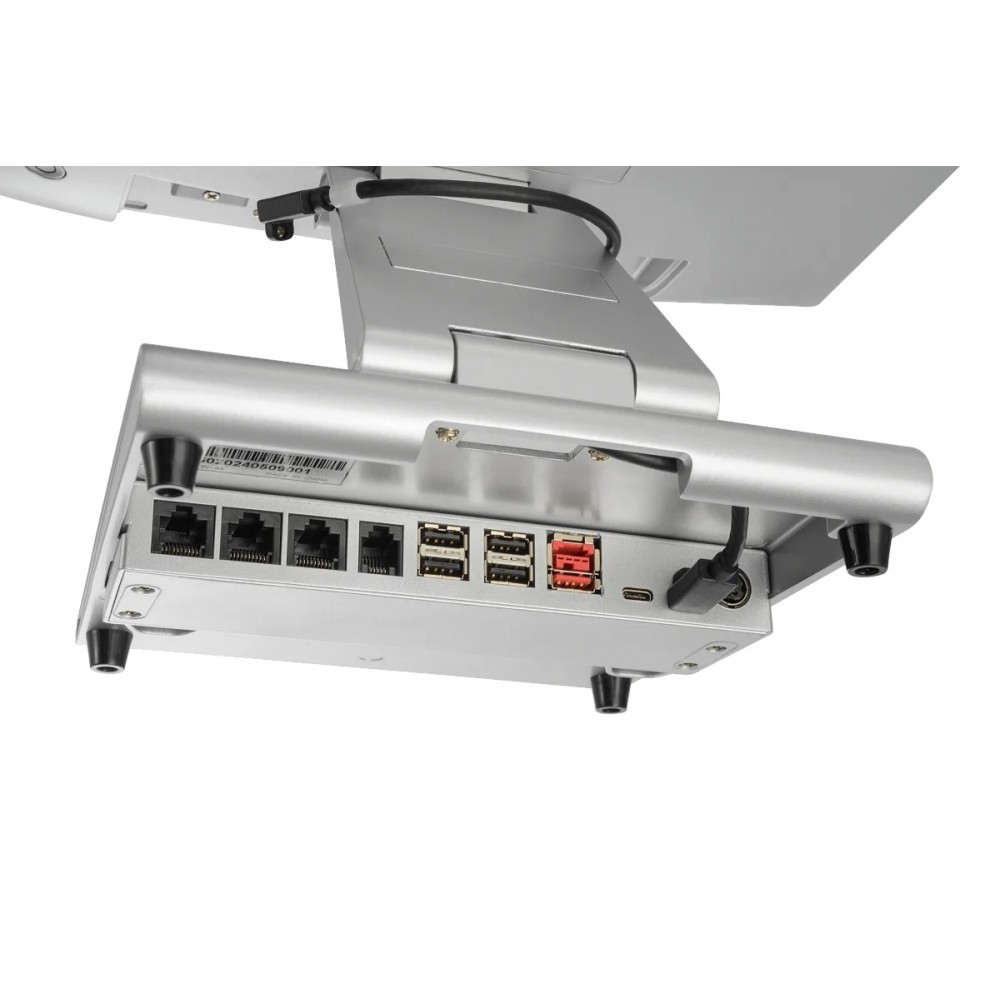 - Моноблок, кабель питания, краткое руководство пользователя. Опции: MSR, второй рекламный монитор 11,6”, Wi-Fi/BT, динамики, 3 × COM, 1 × RJ-12, 2 × USB 2.0, 2 × PUSB 12 V, 2 × PUSB 24 V, 1 × LAN, 1 × USB Type-С (питание от терминала)