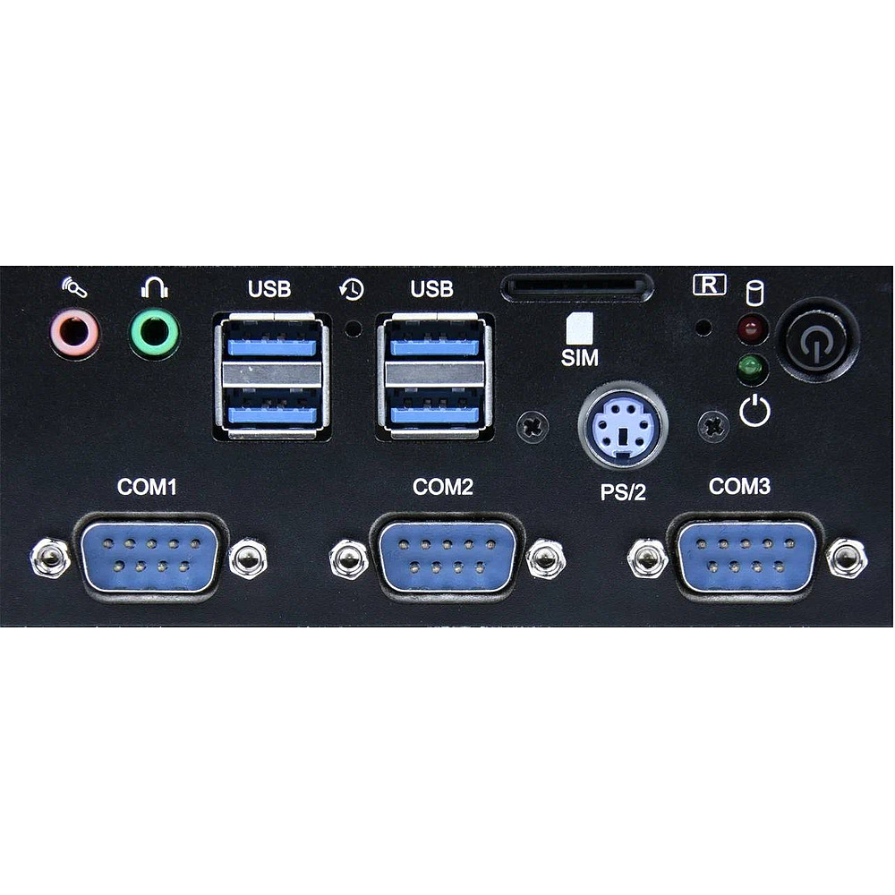 - 2 х LAN (RTL8111 1000 Mbps); 8 х USB (3 х 2.0, 5 х 3.0); 6 х COM (RS-232); 1 х PS/2; 2 х HDMI; 2 х Аудио (1 х Mic-in, 1 х Line-out)