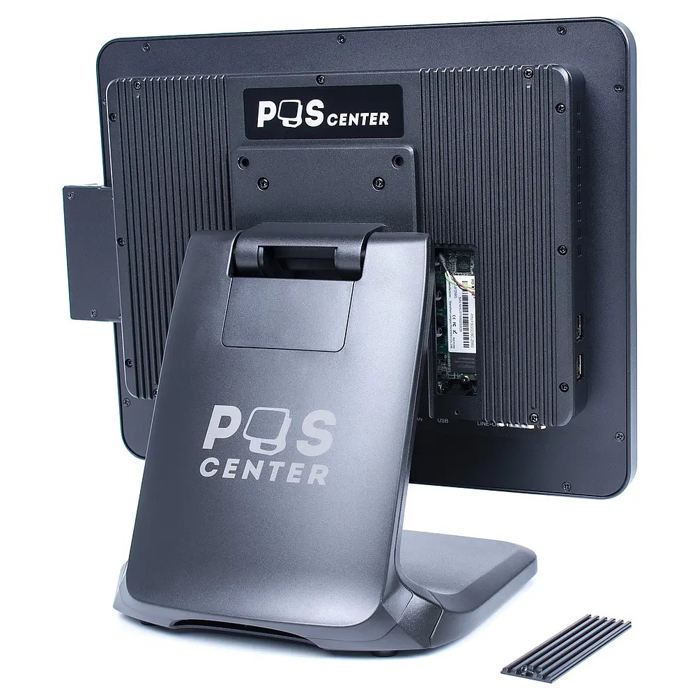 POScenter POS101ES, POS‑терминал, сенсорный моноблок, кассовый терминал, торговое оборудование, автоматизация торговли, Intel Celeron J6412, быстросъёмный SSD, металлический корпус, VESA‑крепление, сенсорный экран 15", кабель‑канал с магнитной крышкой, второй монитор 15", VFD‑дисплей 2×20, терминал для HoReCa, терминал для Retail, надёжность, производительность, удобство обслуживания, эргономичный дизайн, моноблок для кассы, POS‑оборудование, кассовое оборудование, купить POS‑терминал, POScenter официальный дилер, гарантия на POS‑терминал, доставка POS‑терминала, лицензионный терминал, решение для магазина, решение для кафе, оборудование для автоматизации, современный POS‑терминал
