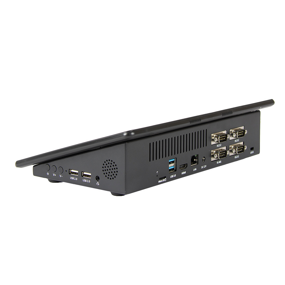 - 1 х LAN; 4 х Serial (3 х RS-232 / 1 х RS485); 4 х USB (2 шт. сбоку корпуса); 1 х HDMI; 1 х Аудио слот (3.5 мм гарнитура); 2 х Динамики (1W)